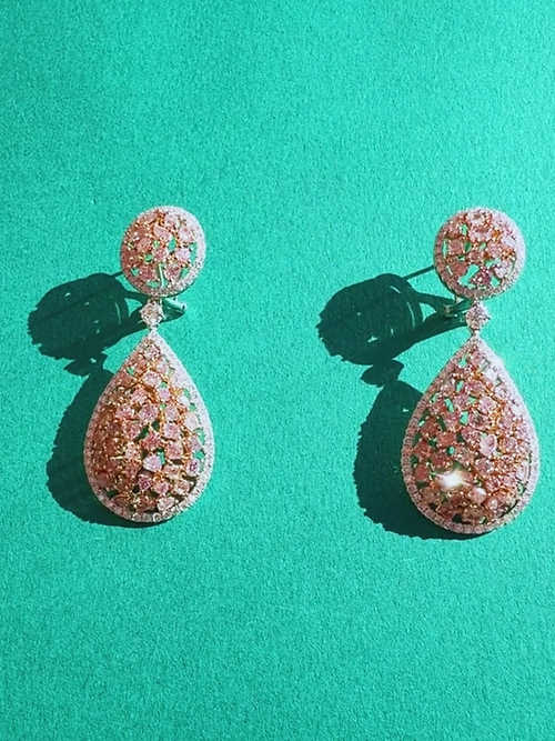 Turn heads and steal hearts with these dazzling 18kt white and rose gold drop earrings. A total of 7.90 carats of natural pink and white diamonds shimmer in every direction, artfully arranged in a teardrop and oval silhouette. With 2.37cts of fancy pink sparkle framed in crisp white brilliance, these earrings blend romance and radiance in perfect harmony.
